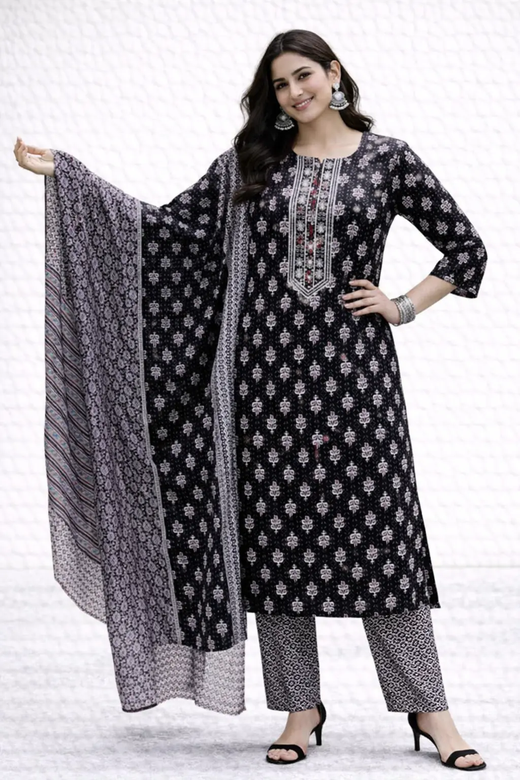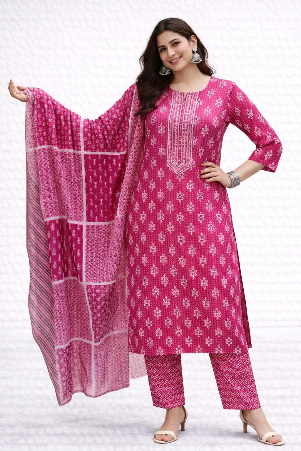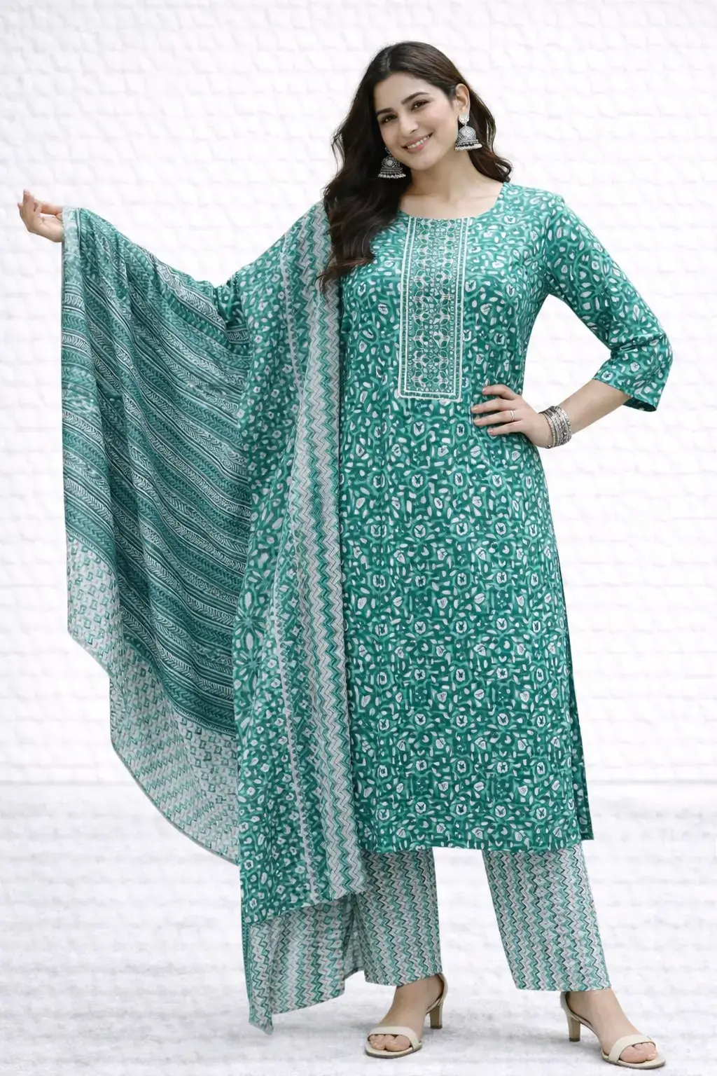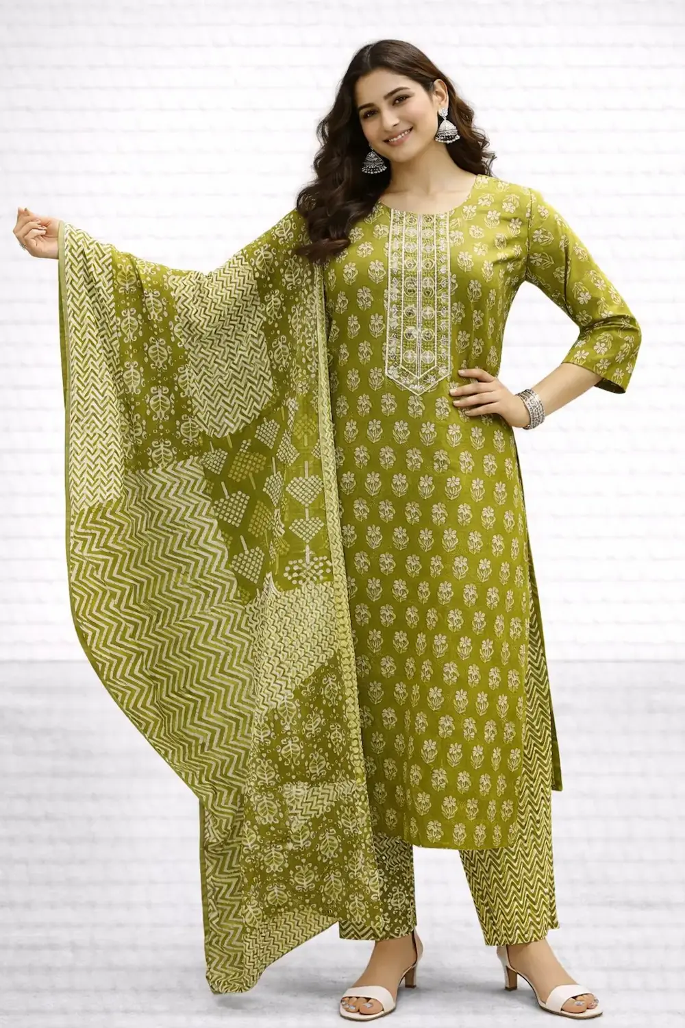 Bring home the charm of traditional Indian craftsmanship blended with modern comfort with this VastramKurtii 100% Pure Cotton Printed Suit Set with Dupatta. Thoughtfully designed for everyday elegance, this Suit is crafted from 100% pure cotton, Mulmul Dupatta, offering a soft, breathable, and lightweight feel that keeps you comfortable throughout the day. Whether you are heading to work, stepping out for a casual outing, or relaxing at home, this Suit is a perfect choice for effortless ethnic styling.