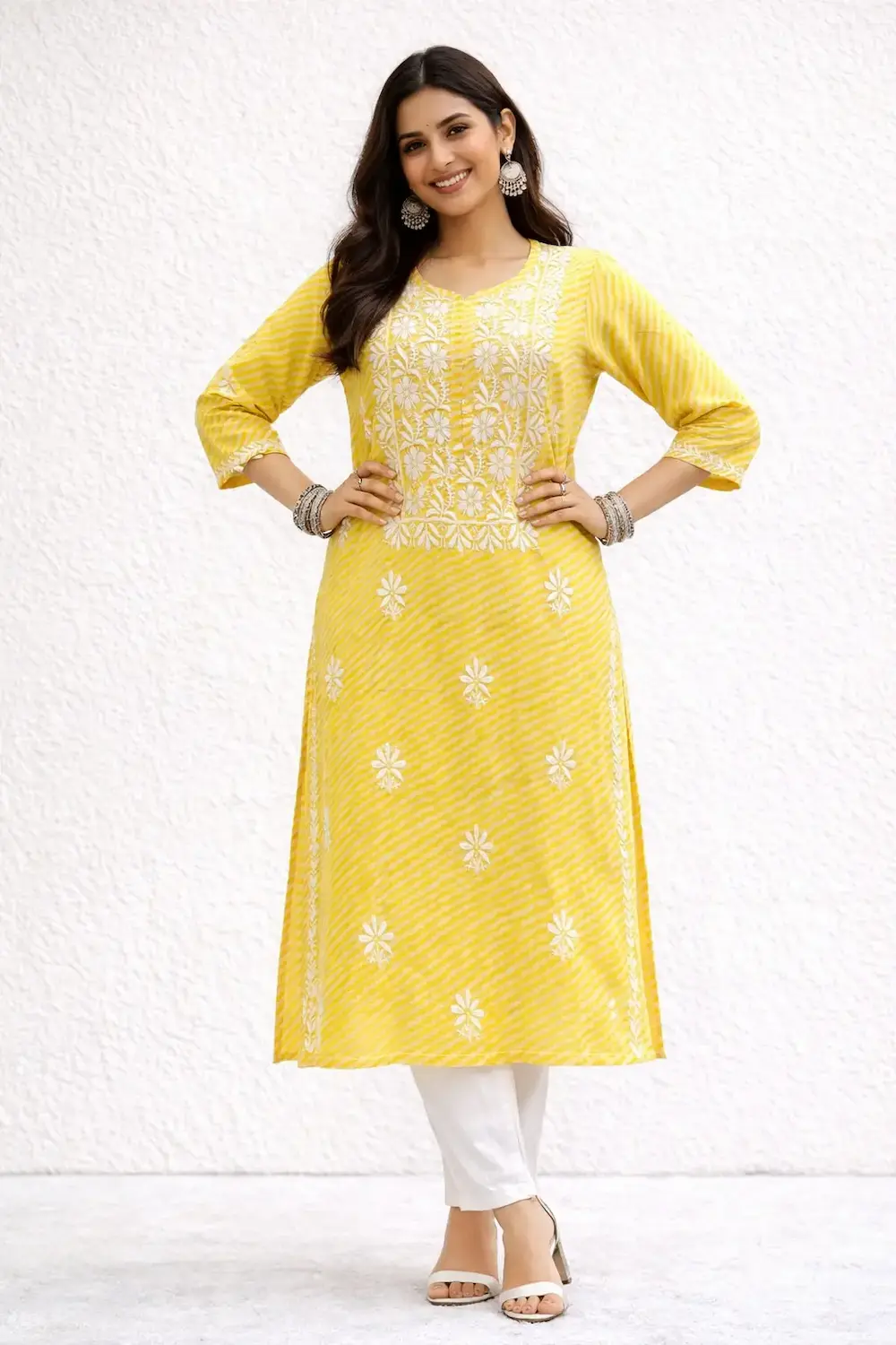 Bring home the charm of traditional Indian craftsmanship blended with modern comfort with this VastramKurtii: Chikankari Handwork Cotton Kurta .Thoughtfully designed for everyday elegance, this kurti is crafted from 100% pure cotton, offering a soft, breathable, and lightweight feel that keeps you comfortable throughout the day. Whether you are heading to work, stepping out for a casual outing, this  kurta is a perfect choice for effortless ethnic styling.